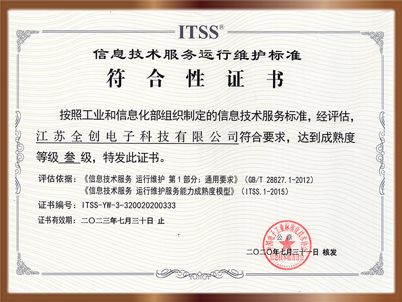 ITSS信息技術服務運行維護標準符合性證書